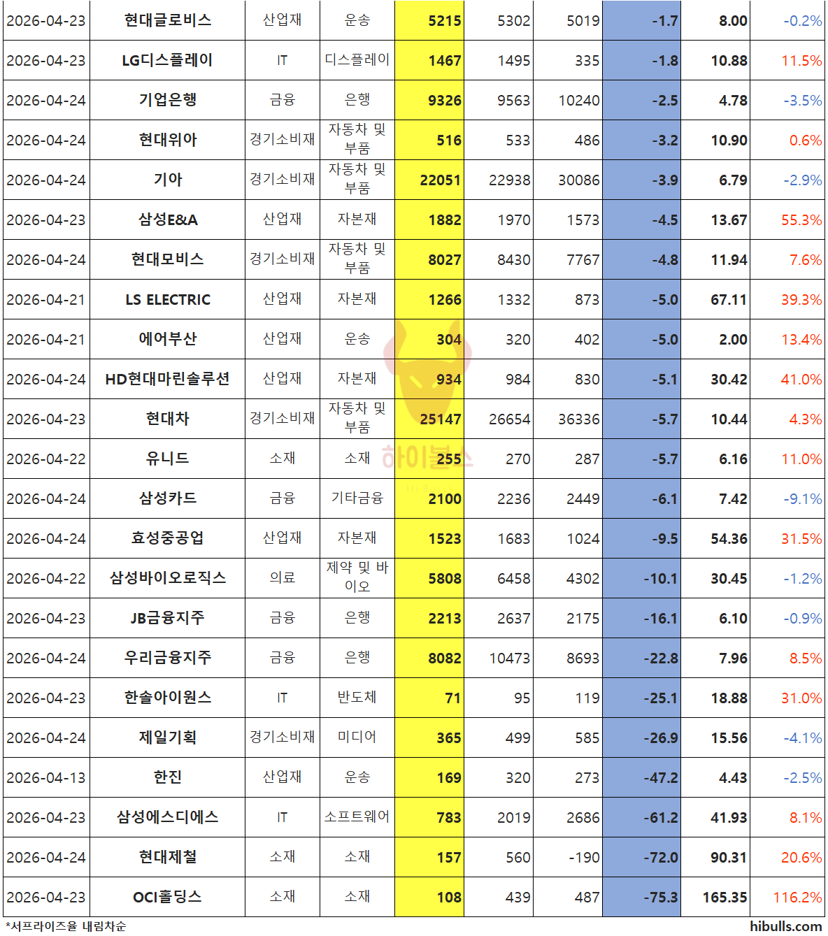 실적 하회 : 현대차, 유니드, 삼성카드, 효성중공업, 삼성바이오로직스