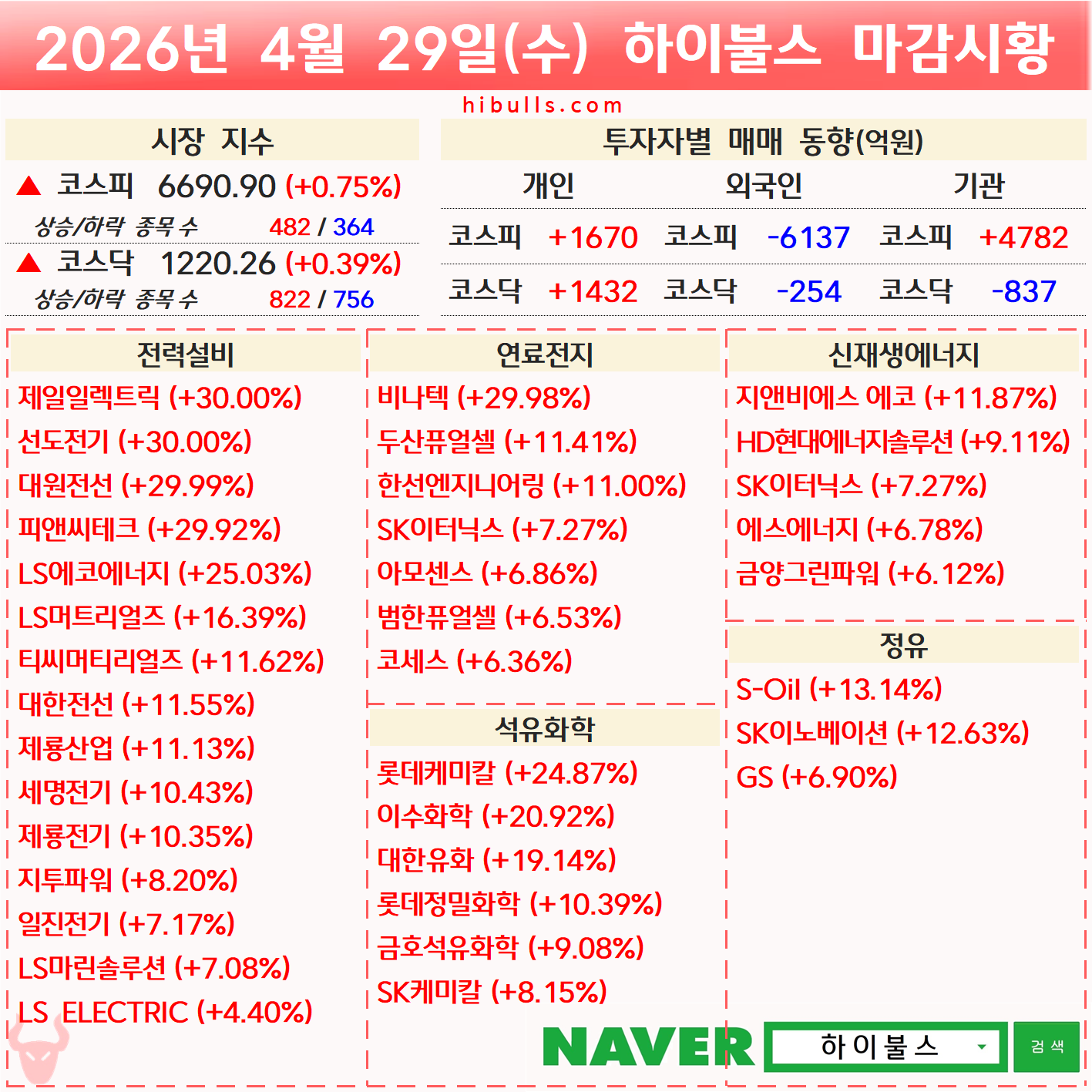 [04.29] 증시 마감시황 및 오늘의 특징주